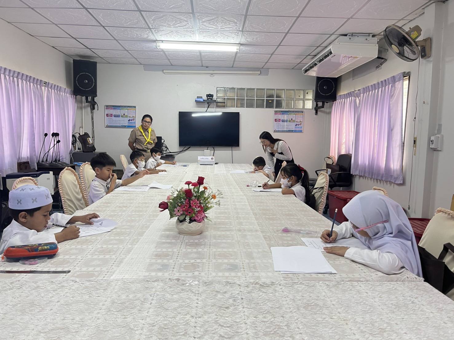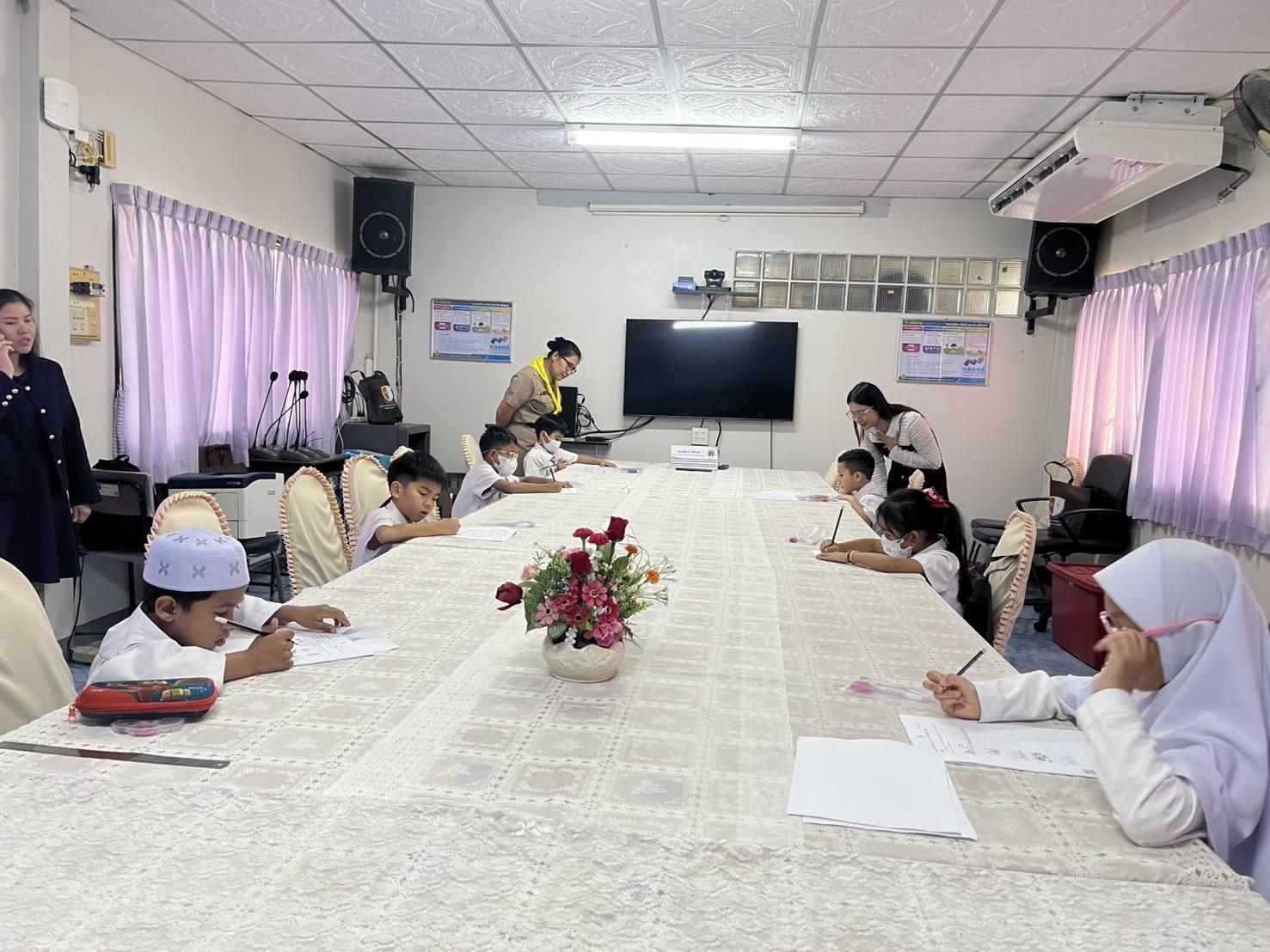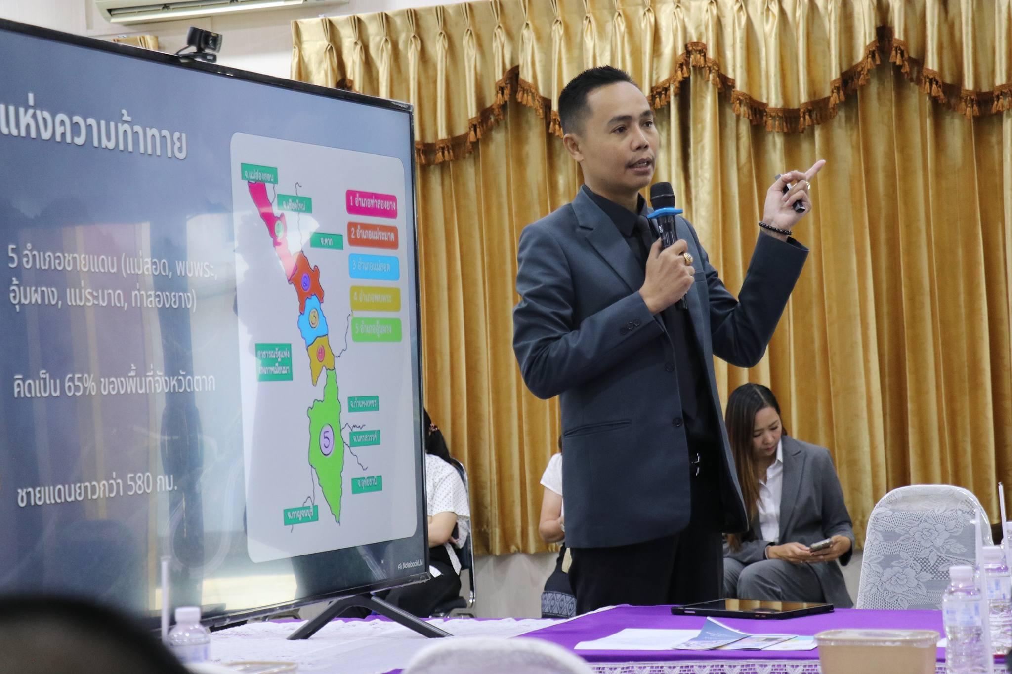 โดยในโอกาสนี้ ดร.ภูรินท์ ชนิลกุล รองผู้อำนวยการสำนักงานเขตพื้นที่การศึกษาประถมศึกษาตาก เขต 2 (สพป.ตาก เขต 2) ได้เข้าร่วมประชุมและบรรยายสรุปข้อมูลสำคัญในหัวข้อ "การจัดการศึกษาพื้นที่ชายแดน 5 อำเภอฝั่งตะวันตกของจังหวัดตาก" และ "การมีส่วนร่วมจัดการศึกษาของศูนย์ประสานงานการจัดการศึกษาเด็กต่างด้าว" (Migrant Education Coordination Center: MECC) การนำเสนอข้อมูลดังกล่าวเป็นการสะท้อนภาพบริบทเชิงพื้นที่ที่มีความซับซ้อนและหลากหลายทางวัฒนธรรม ซึ่งถือเป็นยุทธศาสตร์สำคัญด้านความมั่นคงและการพัฒนาทรัพยากรมนุษย์ในพื้นที่ชายแดน เพื่อให้คณะศึกษาดูงานได้เห็นถึงแนวทางการบริหารจัดการที่มุ่งเน้นการสร้างโอกาสและการเข้าถึงการศึกษาของเด็กทุกกลุ่ม ไม่ว่าจะเป็นเด็กไทยหรือเด็กข้ามชาติ
