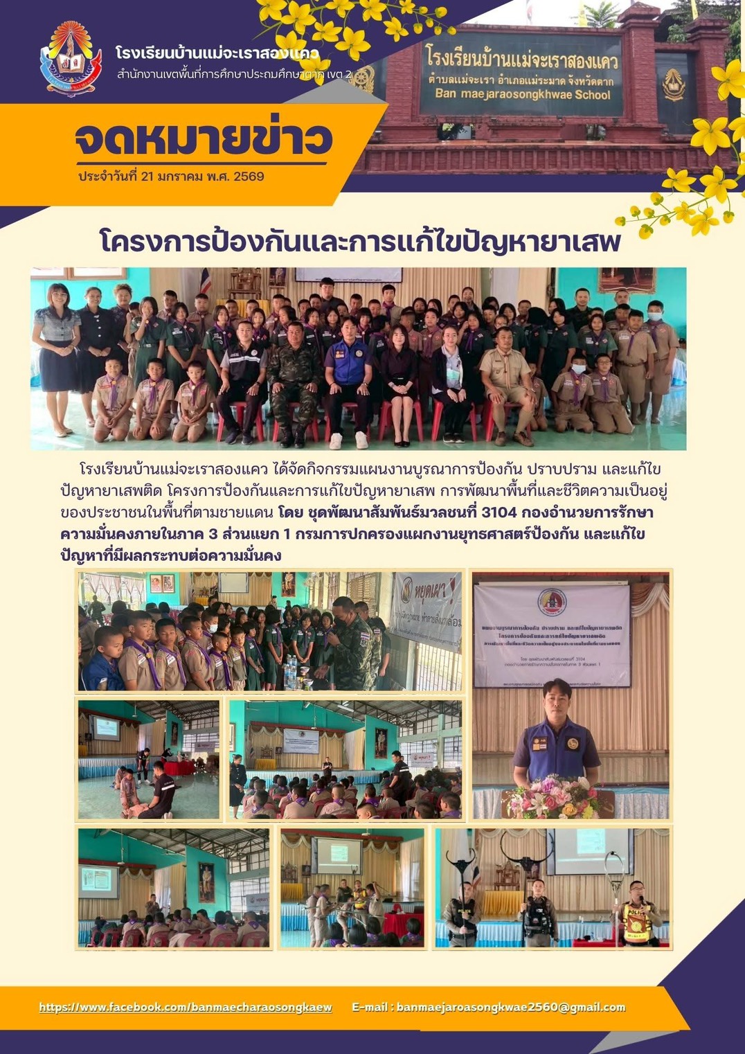 อ่านต่อ...วันพุธ ที่ 21 มกราคม 2569 เวลา 08.00 น.-12.00 น. โรงเรียนบ้านแม่จะเราสองแคว โดย นางสาวไพรริน เมืองมูด รองผู้อำนวยการโร...