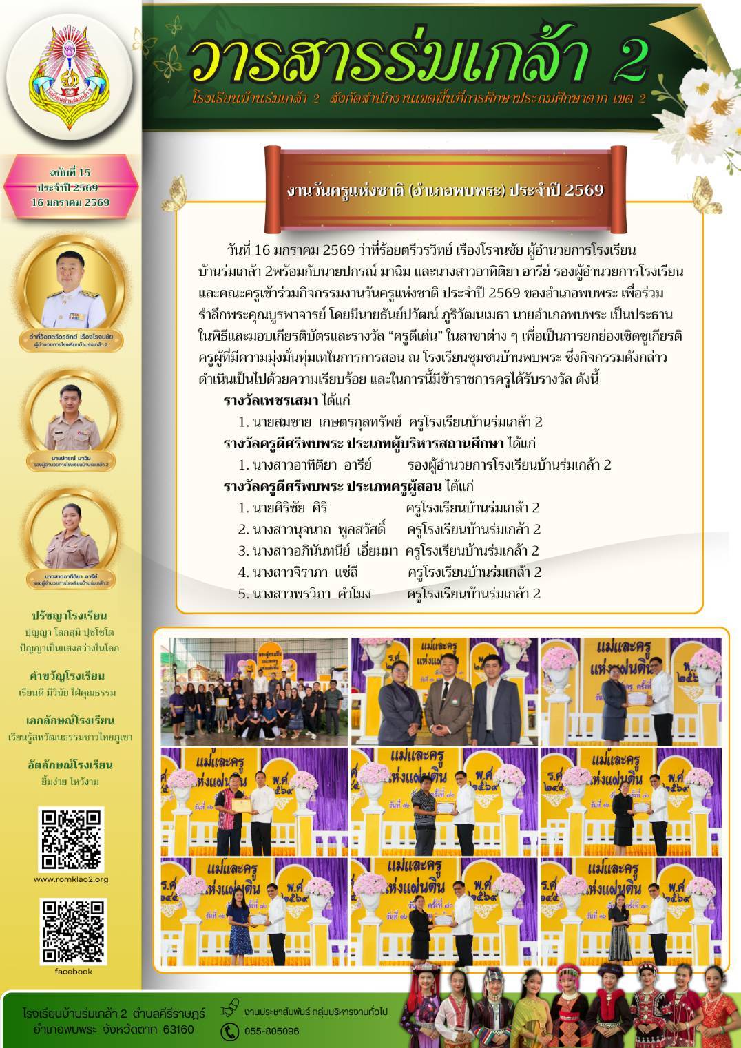 อ่านต่อ...วันที่ 20 มกราคม 2569 นายวาณิช คล้ายผา รองผู้อำนวยการสำนักงานเขตพื้นที่การศึกษาประถมศึกษาตาก เขต 2 พร้อมด้วย นางเสาวลักษณ์ กมลปลื้ม ผู้อำนวยการกลุ่ม ...